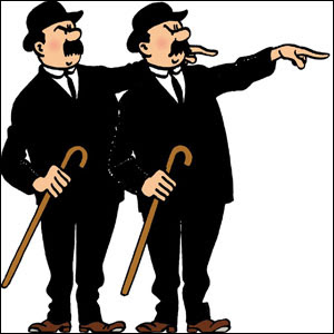 Wiesje vroeg de boys er even bij. Ze kwamen aangetrippeld als kruisingen tussen Freddy Mercury en Kuifjes bijfiguren Jansen en Janssen. (Zie hen afgebeeld.)